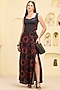 Featuring a black and red crop top in linen satin and cotton voile base with thread hand embroidery and a sweetheart neckline. It is paired with a printed skirt having front slit detail. Accentuate it with minimal jewellery and heels for an evening look.