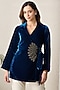 Featuring a blue wrap style top in micro velvet base with crystal embellishment. Accentuate it with statement earrings, pants, a clutch bag and strappy heels for evening soirees.