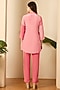 Featuring a blush pink top in double georgette base with patch work and hand embroidery. It is paired with pants. Accentuate it with hoop earrings and mules for casual outings, brunches or sundowner.