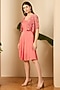Featuring a blush pink dress in viscose bemberg muslin, organza and chanderi base with cutwork embroidery. It is paired with a jacket. Accentuate it with hoop earrings and mules for beach dates, brunches or sundowner.