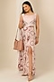 Blush Pink & Red Linen Satin Printed Skirt Set