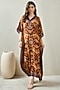 Featuring a brown kaftan in silk crepe base with animal print. Accentuate it with dangler earrings and block heels for garden parties, resort wear or beach dates.