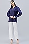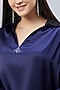Featuring a navy blue V-neck top in polyester satin base with gathers and crystal embellishments.