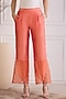 Featuring a peach top in cotton chanderi and nylon organza base with pearl hand embroidery. It is paired with pants. Style it with dangler earrings, block heels and a sling bag for an evening look.