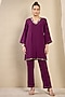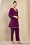 Featuring a purple top in polyester crepe base with hand embroidery. It is paired with straight pants. Style it with dangler earrings and heels for a festive occasion or family gathering.