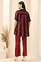 Featuring a black and red pleated shirt in linen satin and cotton satin base with stripe print. It is paired with red straight pants having semi-elasticated waistband and mirror hand embroidery. Accentuate it with minimal jewellery and heels for an evening look.