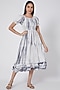 Featuring a white and indigo long dress in cotton modal base with ruffles and tie-dye print.
