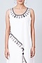 Featuring a white A-line dress in cotton poplin base with digital print and lace tassels.