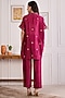 Featuring a wine kaftan top in chanderi base with zari hand embroidery. It is paired with pants. Style it with dangler earrings, wedges and a sling bag for a festive look or family gatherings.