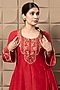Featuring a maroon choga kurta in cotton silk base with zardosi, cutdana, sequins, zari thread and metal pearl embroidery. It is paired with pants and an organza dupatta. Accentuate it with statement earrings and heels for a festive occasion.