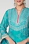 Featuring a sky blue kurta in cotton silk base with hand painted bandhani and pink neck piping. It is paired with contrasting gota patti palazzo pants.