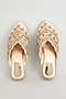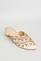Featuring a pair of gold juttis in rexine base with embroidery. It has a rexine lining and 2-inch heels. Style these juttis effortlessly with both traditional ensembles and modern outfits to achieve a versatile and chic style.