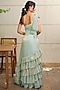 Sky Blue Shimmer Organza Embellished One-Shoulder Maxi Dress