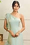Featuring a sky blue one-shoulder ruffled maxi dress in soft shimmer organza base with embellishment and bow-tie shoulder detail. Accentuate it with metallic heels and statement earrings for cocktail parties.