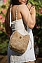 Featuring a beige handcrafted woven mini bucket bag in banana bark base with a gold stud charm. It has an ikat handloom cotton lining and a shoulder strap.