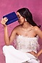 Blue Suede Embellished Clutch