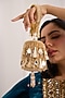 Gold Suede Velvet Mirror Embellished Mini Bucket Bag