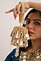 Featuring a gold mini bucket bag in suede velvet base with mirror, pom-pom, crystals, stones and pearl embellishments. Elevate your stride with timeless elegance and exceptional craftsmanship, perfect for festive occasions or wedding ceremony.