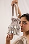 Featuring a grey bucket bag in suede velvet base with mirror, pom-pom, crystal, stones and pearl embellishments. Elevate your stride with timeless elegance and exceptional craftsmanship, perfect for festive occasions or wedding ceremony.