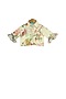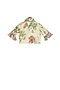 Featuring an ivory printed lehenga in georgette, shantoon, can-can, net, and cotton base with gathers. It is paired with a matching shirt crop top having bell sleeves and front buttons placket.