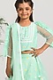 Featuring a mint lehenga in dupion silk, net, cotton, can-can, and shantoon base with daisy print and tassels. It is paired with a matching top having pearls and a dupatta.