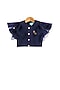 Featuring a pink banarasi lehenga in dupion, organza, chanderi, shantoon, can-can, and cotton base with tassels. It is paired with a contrasting navy blue peter-pan crop top having cape sleeves.