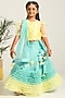 Sea-Green & Yellow Embroidered Lehenga Set For Girls