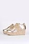 Featuring a pair of gold sneakers in silk base with zari thread, sequins and floral motifs hand embroidery. It has a suede lining and 2.5-inch heels. Designed for brides who choose comfort without compromising on couture.