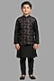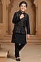 Black Silk Thread Embroidered Bundi Set For Boys
