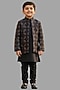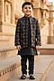 Featuring a black open jodhpuri for boys in silk base with thread embroidery. It is paired with a pure italian cotton kurta and pants. Accentuate it with pair of mojaris and a watch for a festive occasion, weddings or pooja ceremony.