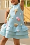 Featuring a blue dress for girls in neoprene base with embroidery. Style it with cute hair accessories and sandals for birthday parties or special occasions.
