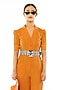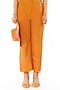 Featuring an orange jumpsuit in khadi cotton base with a notched collar, puffed sleeves and lace detailing. It is paired with a striped buckle belt. Accentuate it with statement jewellery and heels for a casual outing or everyday wear.