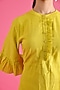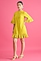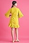 Featuring a yellow mini dress in khadi cotton base with bell sleeves and ruffle detail at the hem. Accentuate it with statement earrings and heels for a brunch date or vacation.