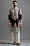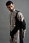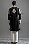 Featuring a black kurta in cotton silk base with thread embroidery. It is paired with pants. Accentuate it with kolhapuri sandals for a festive occasion, wedding or sangeet ceremony.