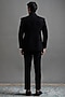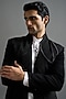 Featuring a black tuxedo in polyester base with drape-style lapels and moti work. It is paired with trousers. Accentuate it with shoes for a reception, cocktail, engagement or wedding ceremony.