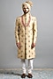 Gold-Beige Raw Silk Hand Embroidered Sherwani Set