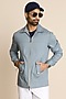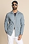 Featuring a grey shacket in cotton chino base with zipper details, a shirt collar and mock pocket flaps. This contains only one piece.