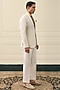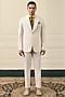 Featuring an ivory single-breasted blazer in poly blend seersucker base with patch pockets and notch lapels. It is paired with tailored trousers. Accentuate it with a crisp shirt and polished shoes for a sharp ensemble, ideal for formal events, business meetings or evening gatherings.