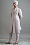 Lavender-Grey Chanderi Threadwork Sherwani Set