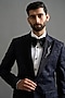Featuring a midnight blue tuxedo in polyester base with satin lapels and textured detailing. It is paired with trousers. Accentuate it with shoes for a reception, cocktail, engagement or wedding ceremony.