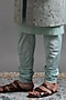 Featuring a mint green sherwani in jacquard base with floral motifs, thread and dabka embroidery. It is paired with a kurta and churidar. Style it with mojaris for a wedding or engagement ceremony.