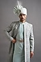 Mint Green Jacquard Dabka Embroidered Sherwani Set