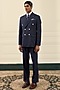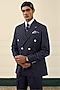 Featuring a navy blue double-breasted blazer in wool blend base with peak lapels. It is paired with tailored trousers. Accentuate it with a crisp shirt and polished shoes for a sharp ensemble, ideal for formal events, business meetings or evening gatherings.
