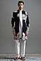 Navy Polyester Threadwork Indowestern Set
