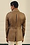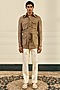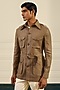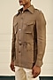 Featuring an olive brown safari shacket in linen herringbone base with a spread collar, shoulder epaulettes and flap pockets. It is paired with an adjustable belt. Accentuate it with tailored trousers and loafers for a refined look, ideal for travel outings, art exhibits or stylish brunches.