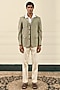 Featuring an olive green safari shacket in cotton suiting base with a notch collar, patch pockets and matte buttons. Accentuate it with tailored trousers and loafers for a refined look, ideal for travel outings, art exhibits or stylish brunches.