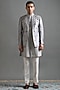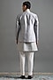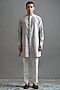 Featuring a stone grey jacket in raw silk base with cutdana work and embroidery. It is paired with a kurta and pants. Accentuate it with mojaris for a wedding, engagement or sangeet ceremony.