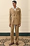 Featuring a taupe double-breasted blazer in wool blend base with peak lapels. It is paired with trousers. Accentuate it with a crisp shirt and polished shoes for a sharp ensemble, ideal for formal events, business meetings or evening gatherings.