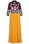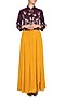 Featuring an aubergine short jacket in hand woven bafta base with dabka pati embroidery. It is paired with a matching kalidar kurta in chiffon base and churidar pants in cotton lycra base.