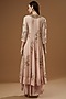 Featuring a blush pink in kalidar anarkali in chiffon and silk muslin base with aari work. It is paired with matching palazzo pants.